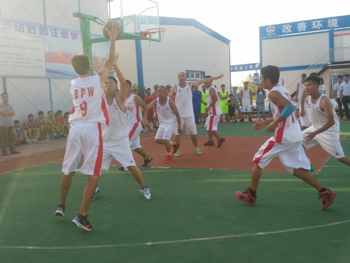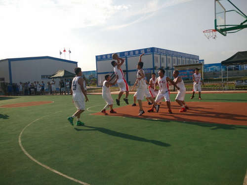 在此次的比賽中,參賽的單位有監(jiān)理3標(biāo)中企建發(fā)、1標(biāo)中鐵十二局、4標(biāo)四川場(chǎng)道、3標(biāo)中國(guó)華西、5標(biāo)上海路橋、8標(biāo)中鐵航空港、10標(biāo)中水十六局、6標(biāo)甘肅機(jī)械化共8支籃球隊(duì)進(jìn)行參賽,建設(shè)單位也派隊(duì)參加,進(jìn)行友誼賽,我們跟兄弟單位中鐵航空港,上海路橋,中水十六局、四川場(chǎng)道一決高下,最后入圍四強(qiáng),在決賽的比賽中,我們?cè)俅斡鲆?jiàn)實(shí)力強(qiáng)勁的中水十六局,雙方隊(duì)員在籃球比賽現(xiàn)場(chǎng)氣氛熱烈,隊(duì)員們積極進(jìn)攻,嚴(yán)密防守,精彩的配合,巧妙的搶斷,不時(shí)的將比賽氣氛推向高潮。天氣雖然炎熱,但絲毫沒(méi)有影響隊(duì)員的熱情,盡管兩支球隊(duì)都是業(yè)余籃球愛(ài)好者,但他們?cè)诒荣愔芯憩F(xiàn)出較好的團(tuán)隊(duì)協(xié)作能力,一群年輕人激情飛揚(yáng),帶球、傳球、搶斷、上籃,賽場(chǎng)對(duì)抗激烈,隊(duì)員個(gè)個(gè)揮汗如雨,最后在我方隊(duì)員的努力拼搏下,以32:30的比分,贏得第一。