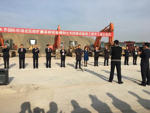 2016年10月16日上午11時,我司承建的新疆烏魯木齊國際機場北區(qū)改擴建工程采砂坑處理和土方回填試驗段工程Ⅰ標段項目順舉行了開工儀式。