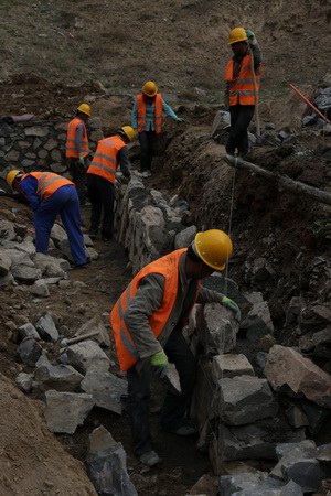 下圖為該工程的部分原地形地貌及施工場景