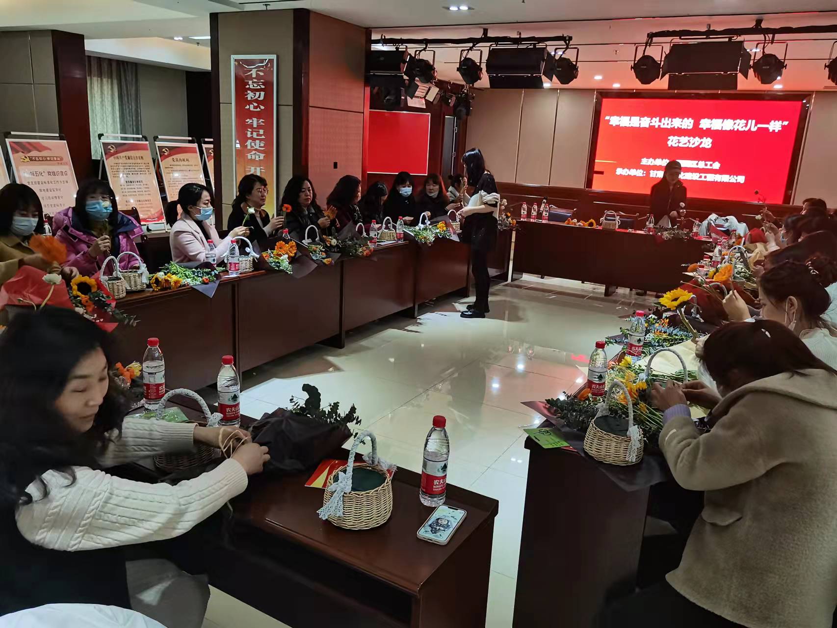 隨后舉行了“幸福是奮斗出來(lái)的,幸福像花一樣”花藝沙龍。